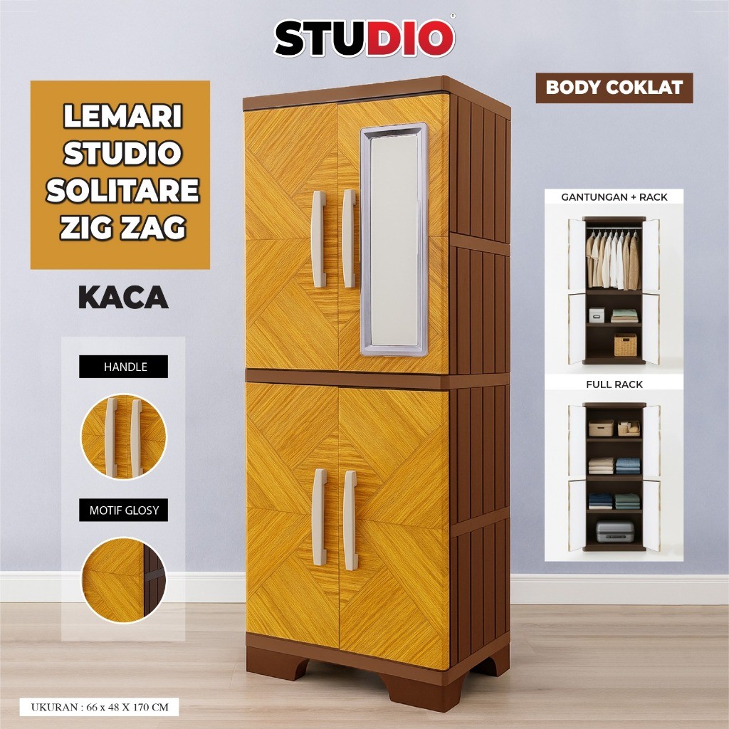 STUDIO - Lemari Pakaian 2 Pintu Solitare VIP Jumbo Gantung + Rak + Kaca + Kunci Printing