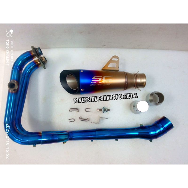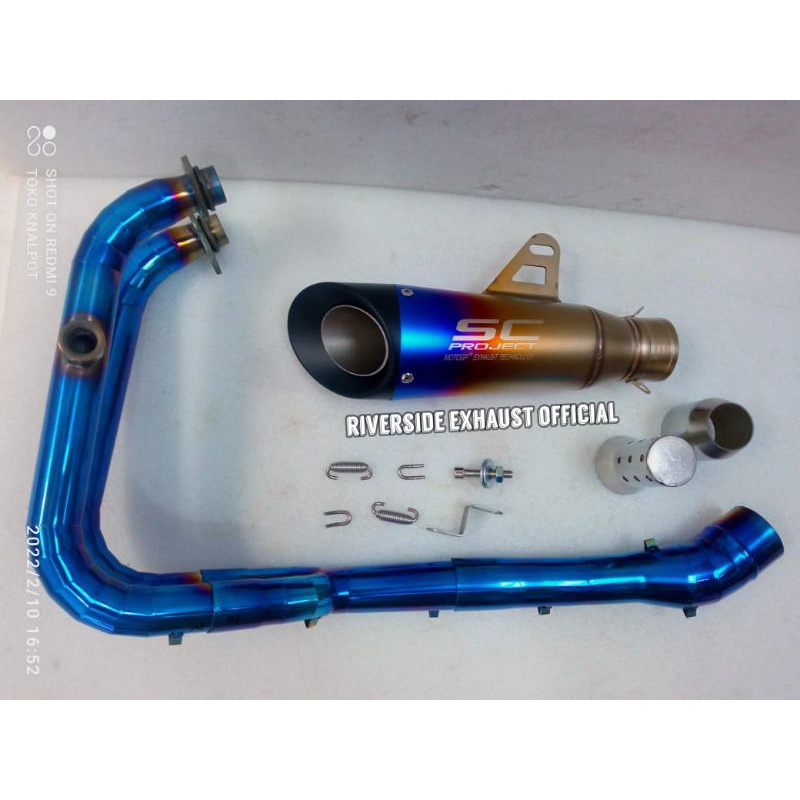 knalpot SC PROJECT S1 BLUE IMPORT TAIWAN fullset underbelly kolong ninja new ninja 250 fi old Karbu Kawasaki Z250 R 25 m