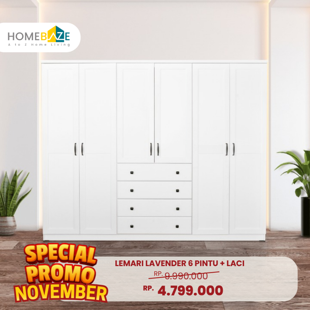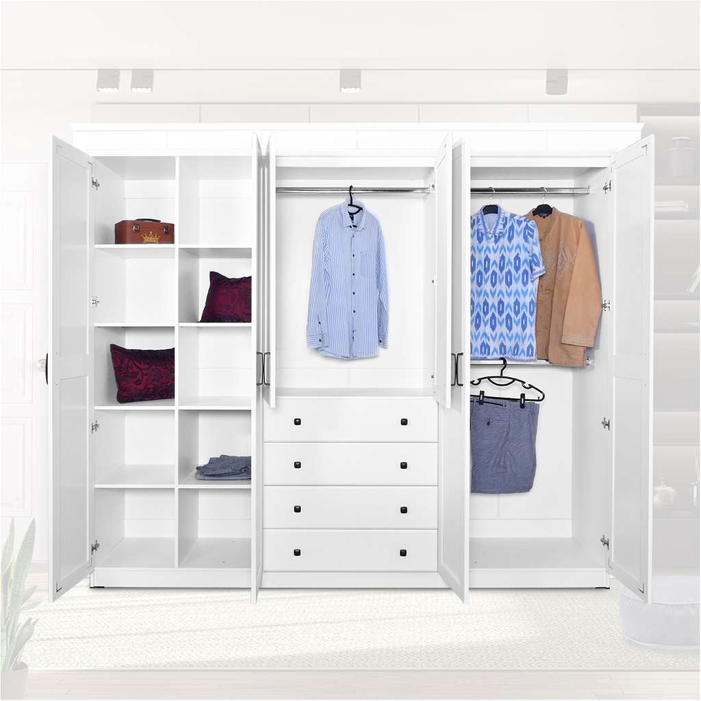 Homebaze - Lemari 6 Pintu + 4 Laci Putih Minimalis Besar Murah Kuat, Kualitas Ekspor / lemari minimalis besar