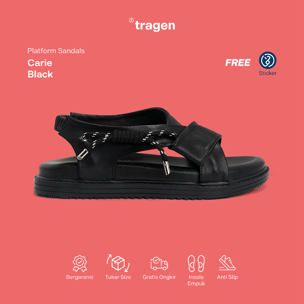 TRAGEN FOOTWEAR CARIE BLACK SANDAL PLATFORM WANITA