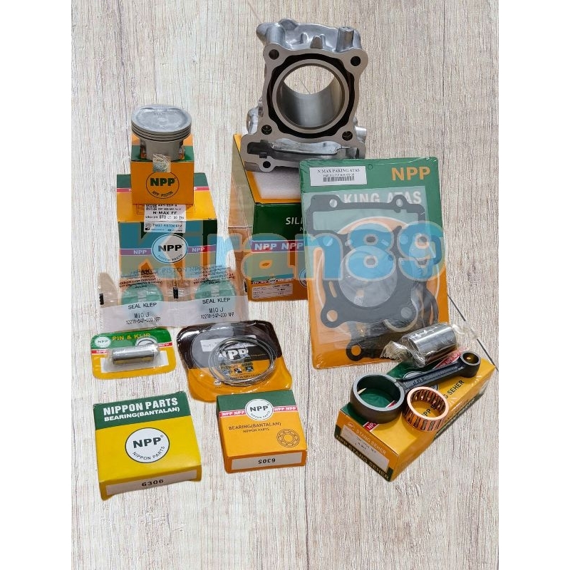 Blok seher boring silinder Nmax N max Aerox 155 Lexi 125 2DP + piston kit + stang seher bearing + paking Topset + seal klep ori Npp