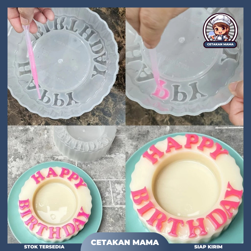 Cetakan Puding Cetakan Puding Happy Birthday + 1 Set Cup Bunga Free Pipet Cetakan Puding Hbd 1,2 Liter Cetakan Agar