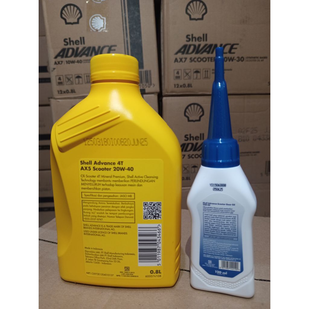PAKET BUNDLING OLI MESIN MOTOR SHELL ADVANCE MATIC AX5 SC 20W-40 (0,8L) + OLI GARDAN SHELL 15W-40 (120ml)