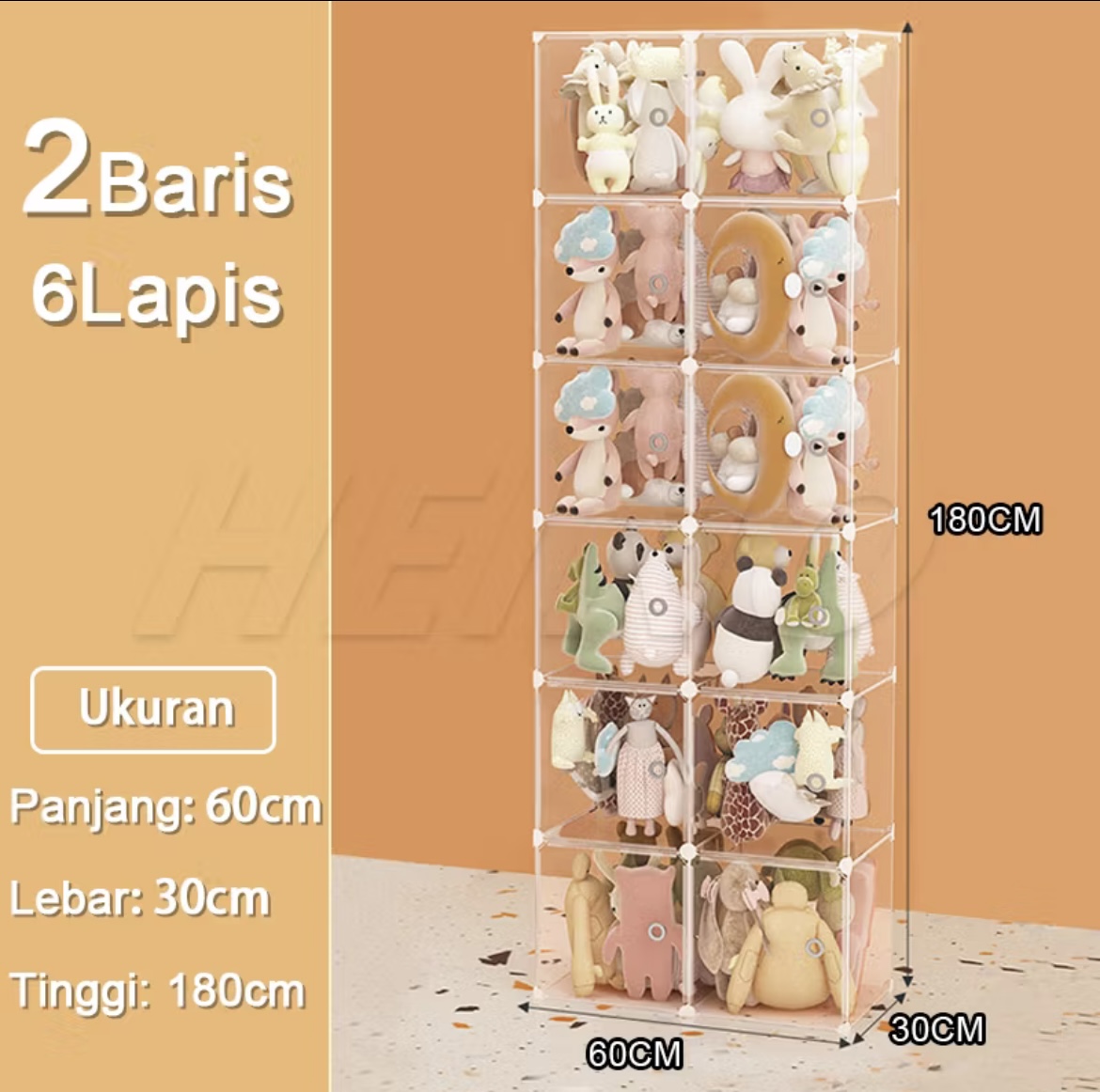 HEINO Rak Tas Transparant / Rak Tad Transparant Kedap Debu / Lemari Boneka Mainan