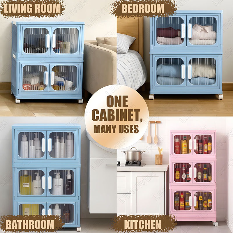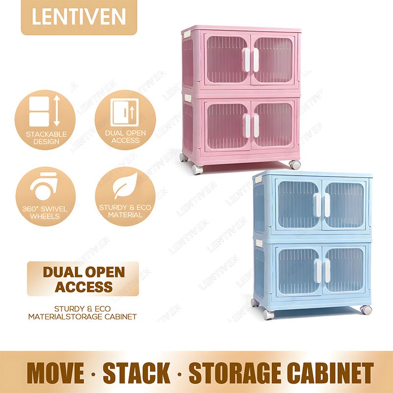 LENTIVEN Lemari Plastik Susun Besar Lemari Pakaian Anak Bayi, Rak Baju Multifungsi Organizer Hemat Ruang, Katrol Senyap