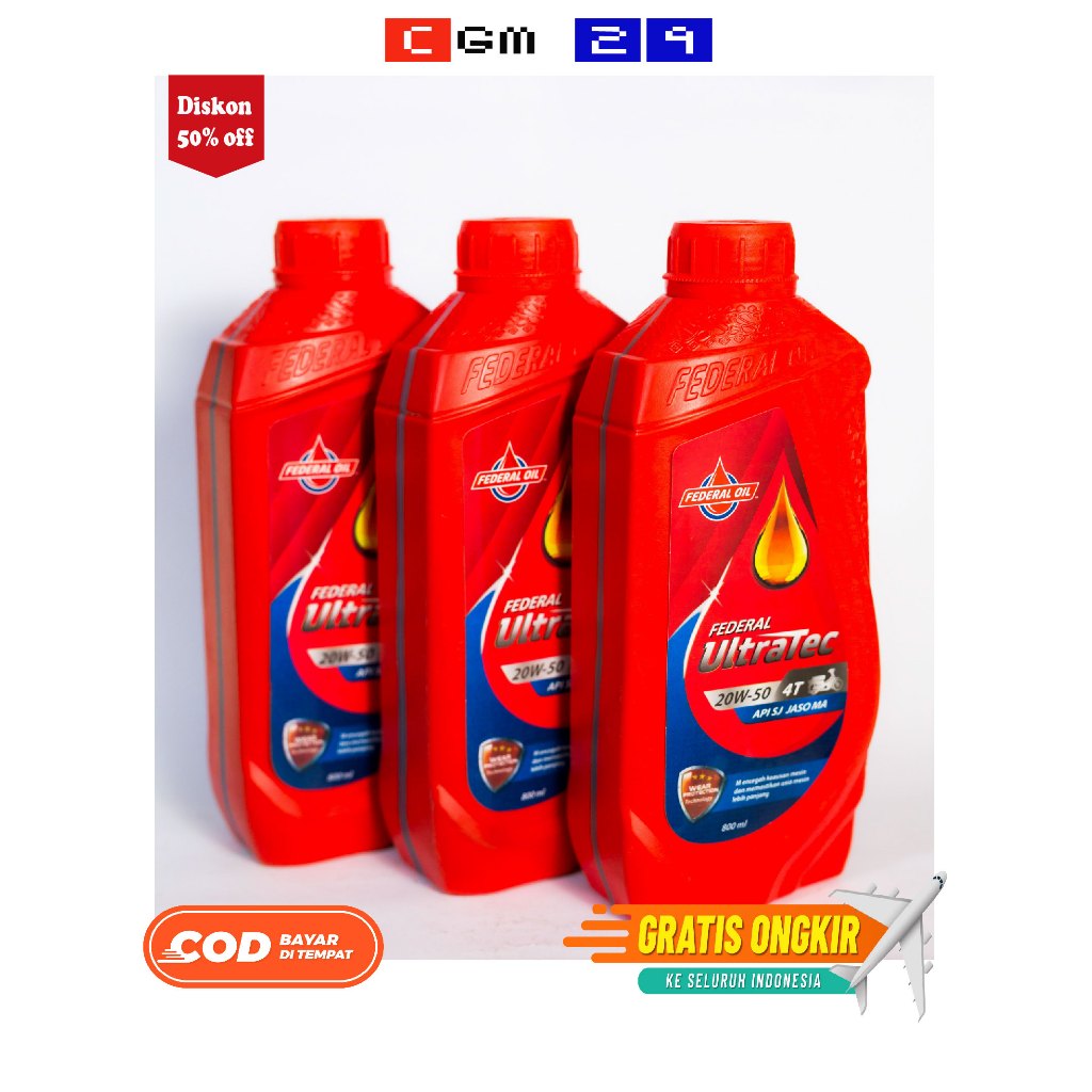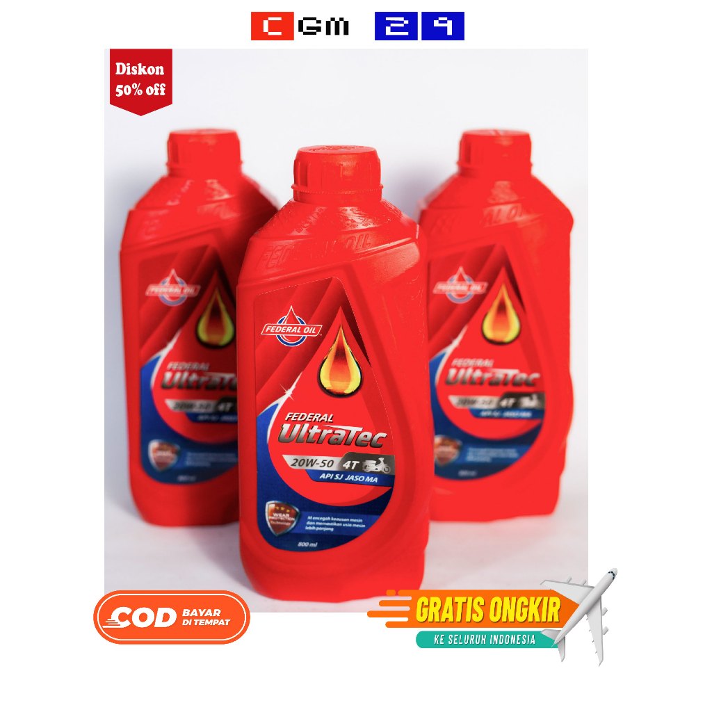 (HARGA ISI 3BOTOL) - OLI ULTRATEC FEDERAL 20W-50 800ML API SJ JASO MA KHUSUS MOTOR BEBEK YAMAHA DAN HONDA DLL