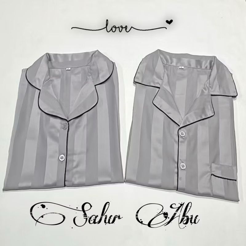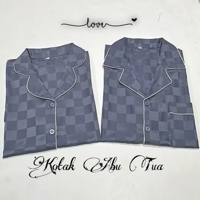 stelan couple pp satin silky kotak salur bajutidur piyama kekinian