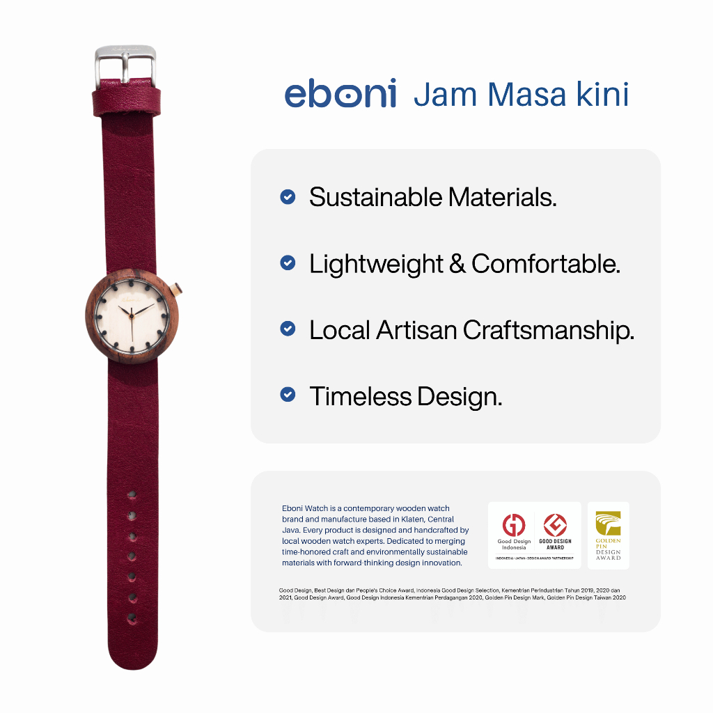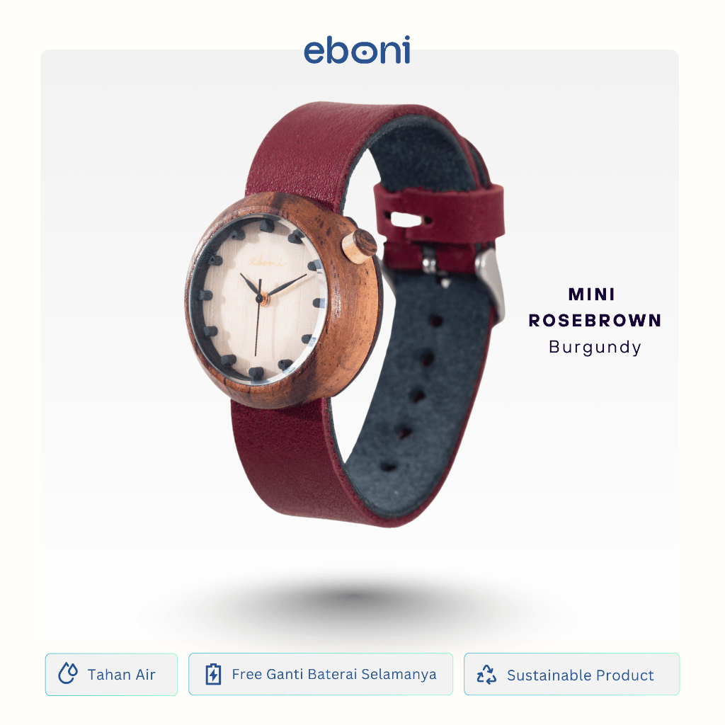 Eboni Jam Tangan Kayu Mini Wanita Rosebrown Burgundy Simple Cantik Elegant Terbaru Kekinian Terlaris