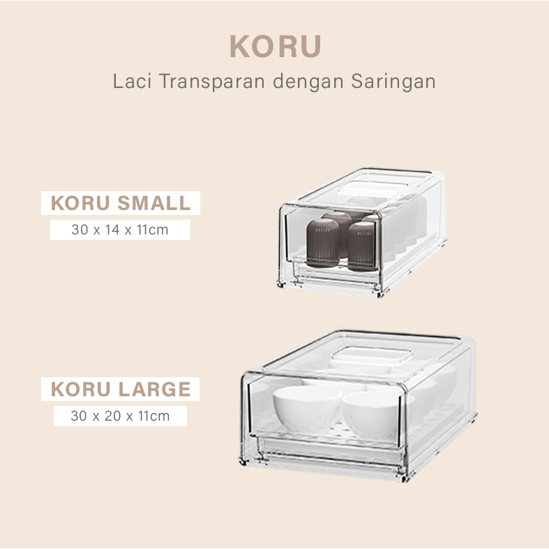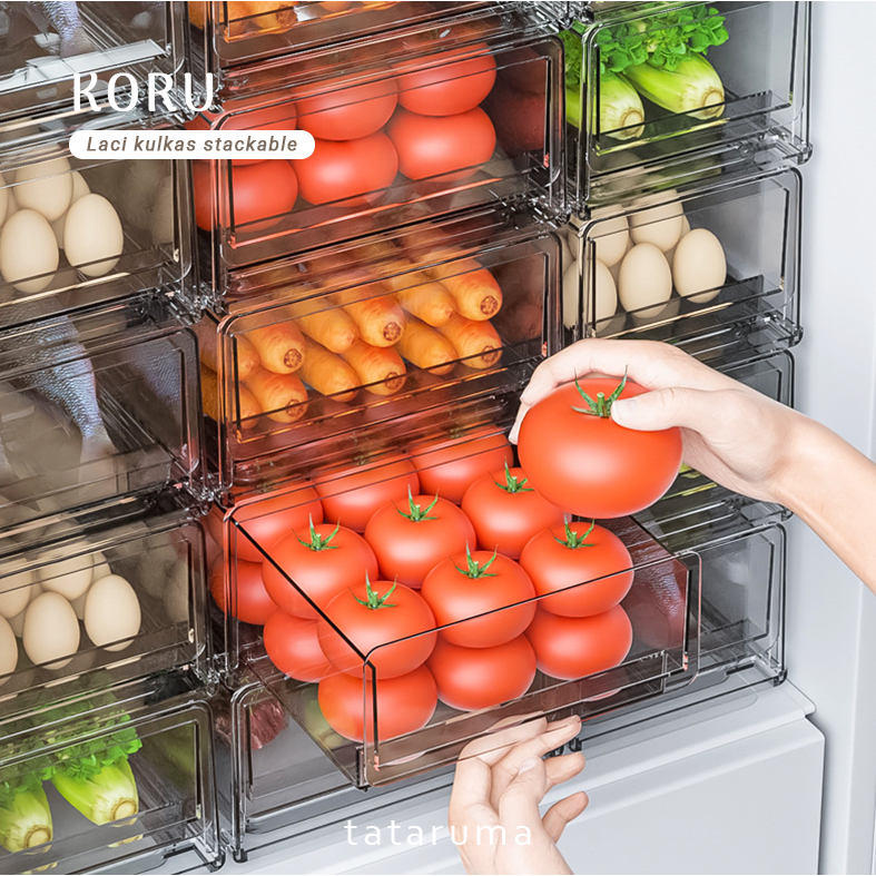 TATARUMA Koru - Kotak Kontainer Tempat Penyimpanan Toples Laci Drawer Makanan Sayur Buah Daging Bawang Cabai Kulkas Frid