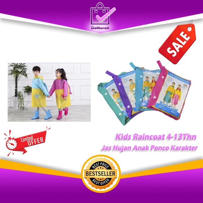 Terlaris Kids Raincoat 4-13Thn Jas Hujan Anak Ponco Karakter Mantel Poncho 0767 - Pink / Ungu M Keren