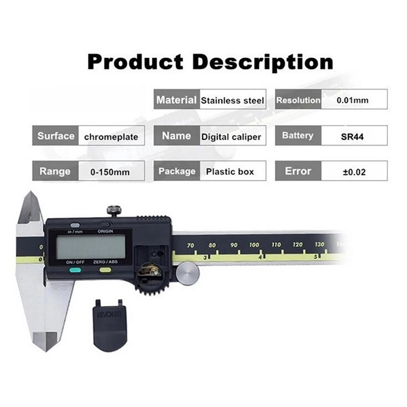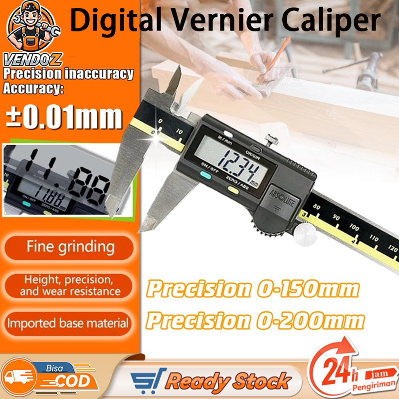 Jangka Sorong Digital Caliper Meter Jangka Digital 0-150MM 0-200MM Presisi Stainless Vernier Digital LCD Screen ZLX