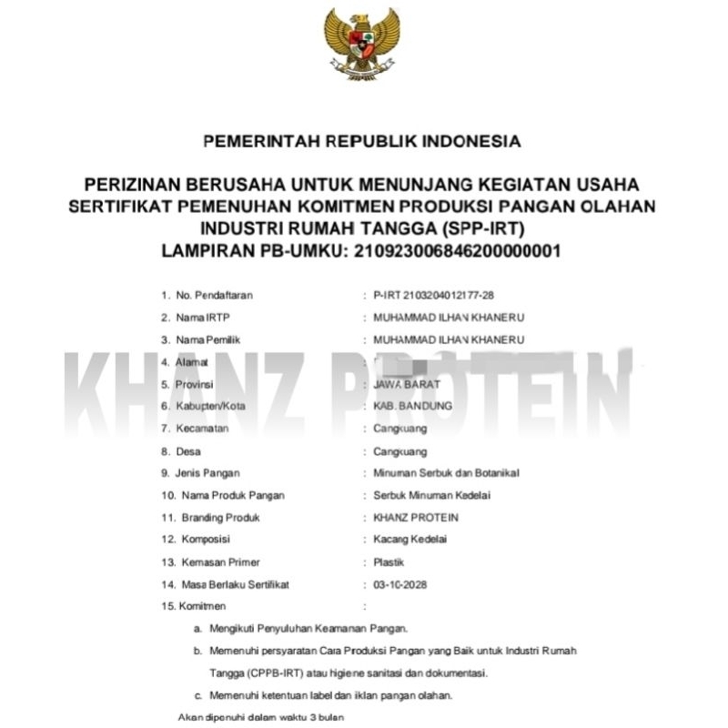 WHEY PROTEIN KHANZ PROTEIN SUSU BUBUK KEDELAI 1KG(1000GRAM)