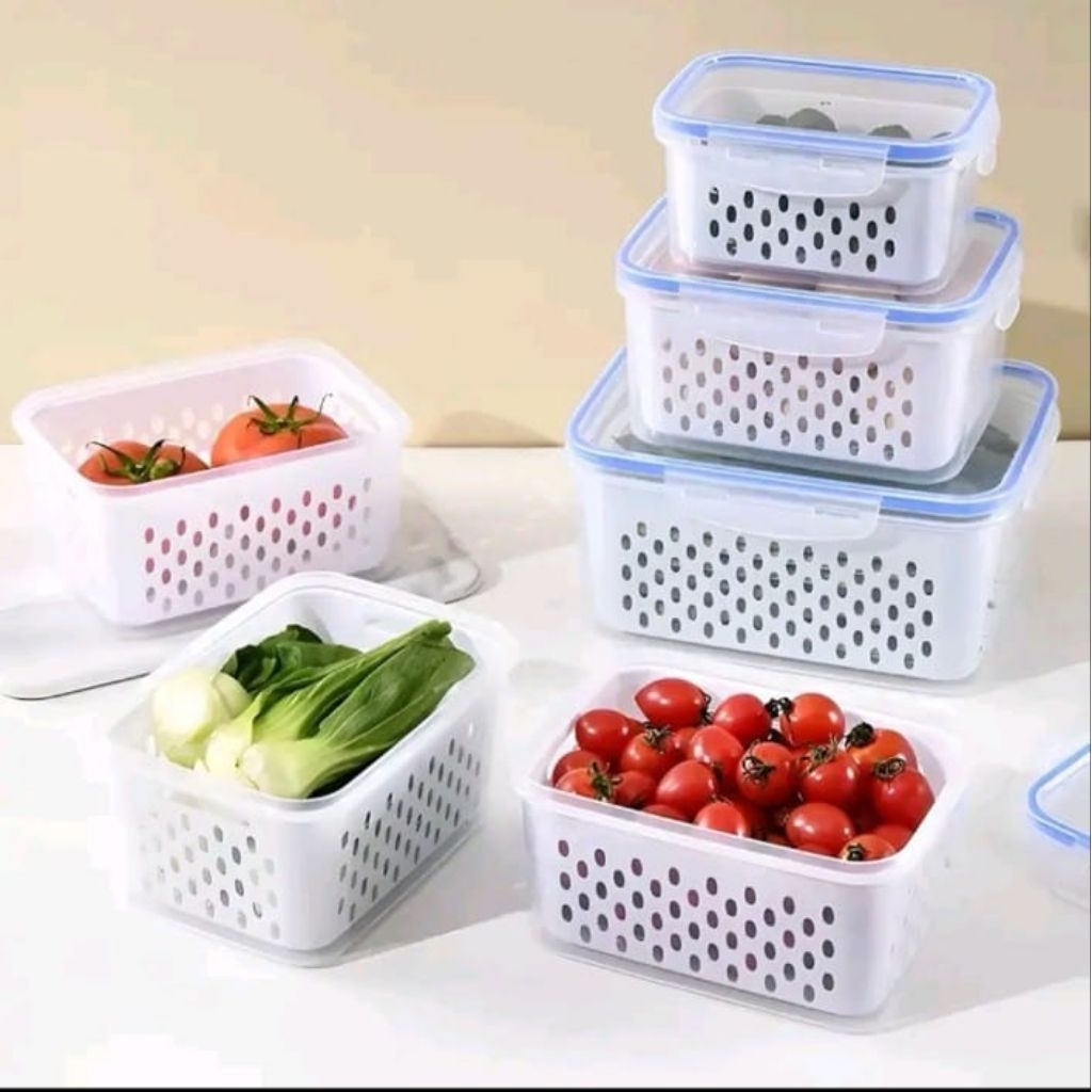 Kotak Penyimpanan Makanan 1 Set 3 Pcs Food Container Dalam Kulkas Wadah Tirisan Pakai Tutup Box Penyimpanan Makanan Di D