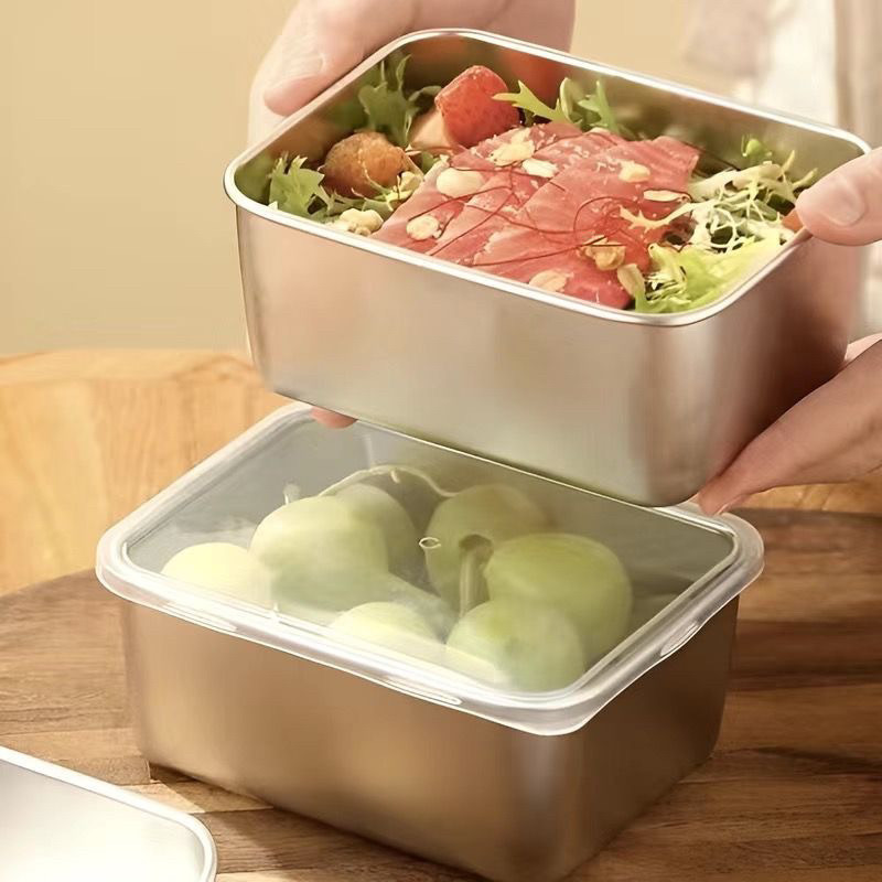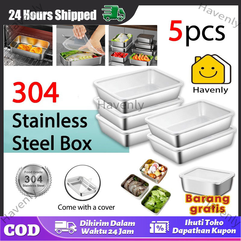 (5PCS)Stainless 304 Kotak Kontainer Makanan Kulkas Baki Stainless Steel Cocok Untuk Oven Microwave Dilengkapi dengan pen