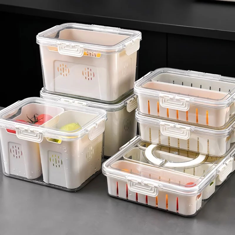JUNOME Kotak Penyimpanan Sayur/Buah/Makanan/Kotak Penyimpanan Segar Tertutup/Food Container Anti Tumpah/ Bebas BPA 2 SEK