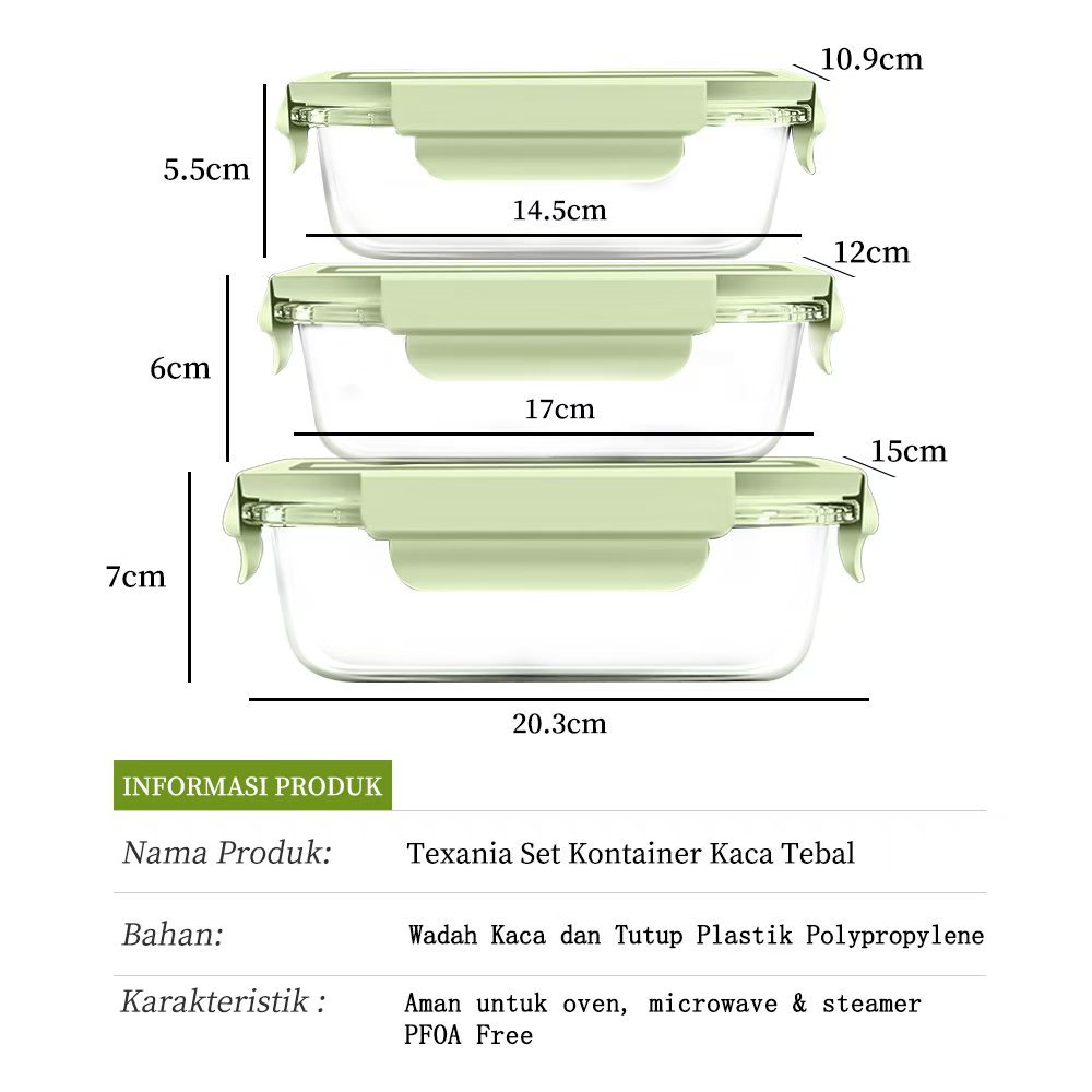 TEXΑΝΙΑ SET FOOD CONTAINER - FOODBOX KACA WADAH MAKANAN - WADAH SAYURAN WADAH BUAH BUAHAN - BISA FREEZER DAN OVEN MICROW