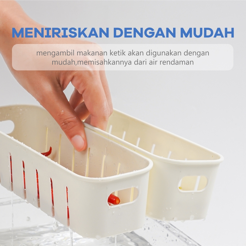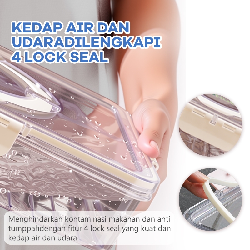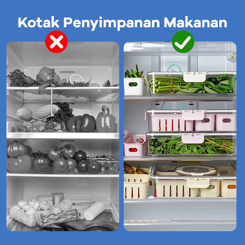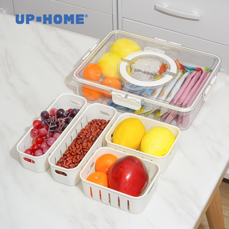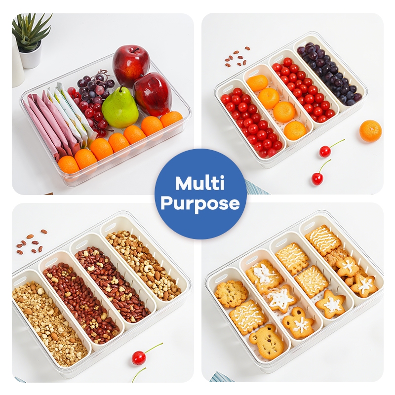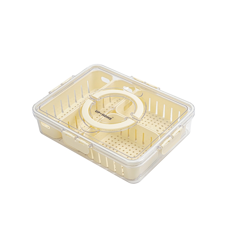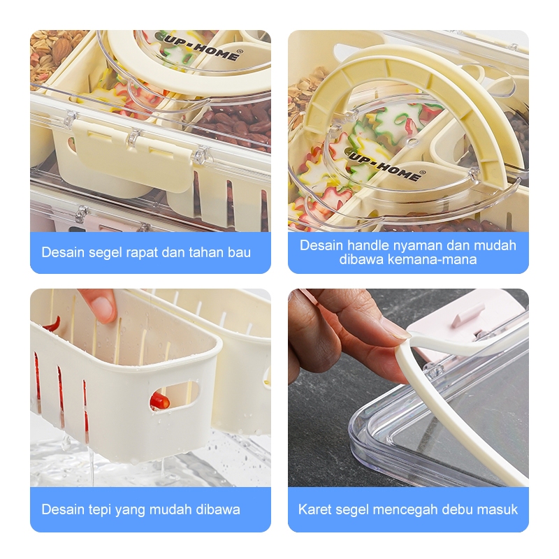 UPHOME Tempat Penyimpanan Makanan 4 Grid Dengan Saringan /Tutup Transparan, Kulkas Food Container Kotak Penyimpanan Maka