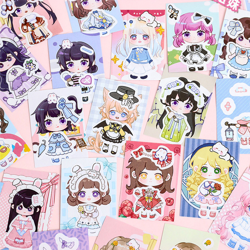 Geetoy 50 Buah Mini Dress Up Stiker Buku Lucu Gadis Kartun Pasta Stiker Anak-anak DIY Berdandan Kertas Boneka Mainan Edukasi