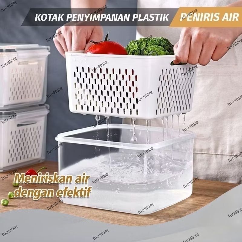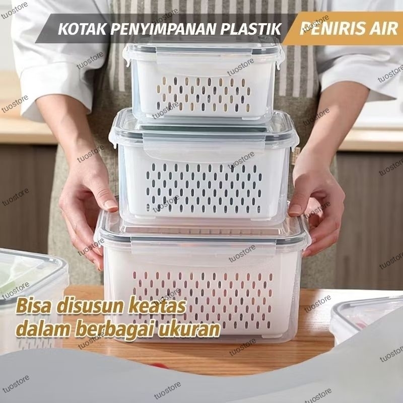 [] ISI 3PCS (6KOTAK) KOTAK PENYIMPANAN MAKANAN DENGAN SARINGAN KERANJANG BUAH SAYURAN FOOD FRIGE CONTAINER KOTAK PENY