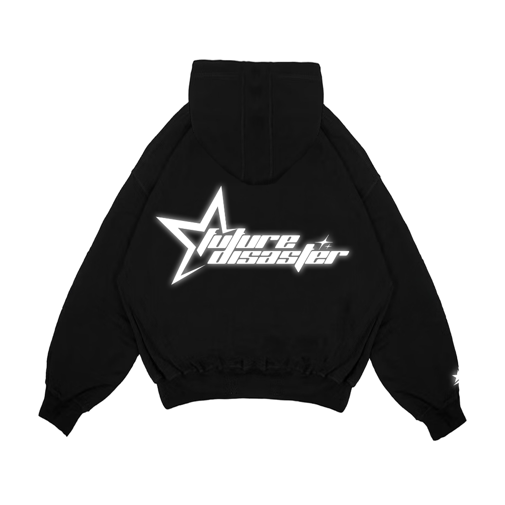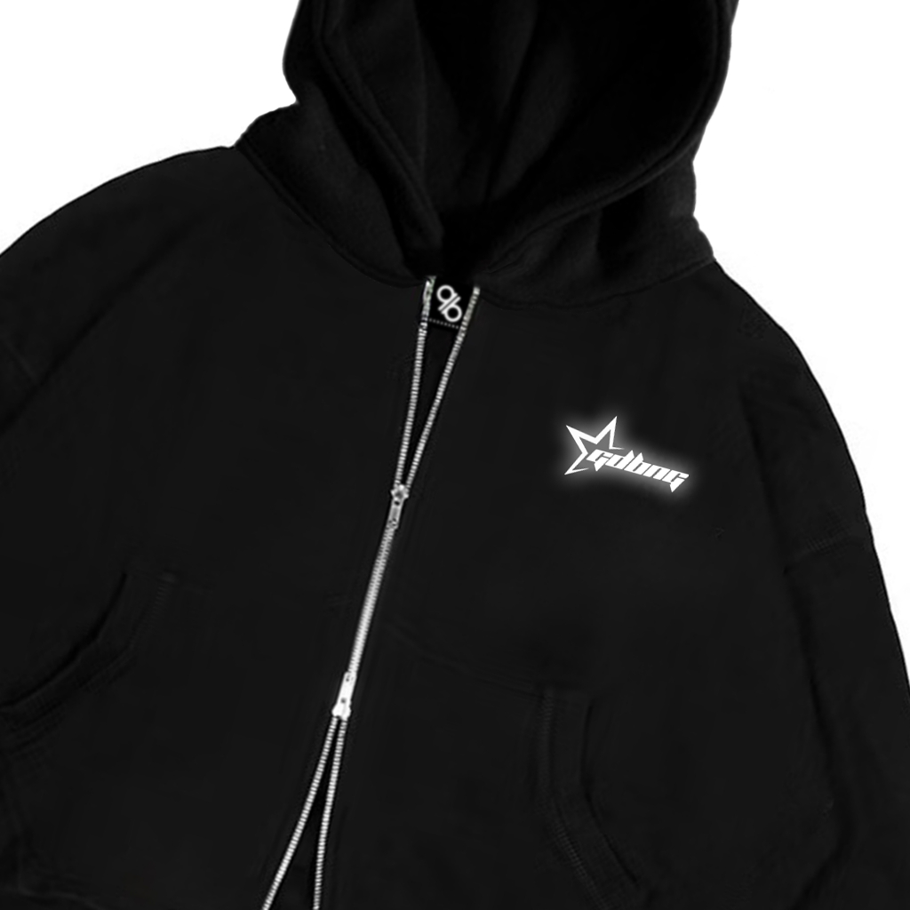 Gadabang Hoodie Boxy Double Zipper Menyala Sablon Reflective Future Disaster Hitam