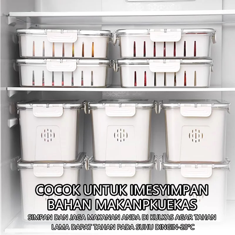 JUNOME Kotak Penyimpanan Sayur/Buah/Makanan/Kotak Penyimpanan Segar Tertutup/Food Container Anti Tumpah/ Bebas BPA 3 SEK