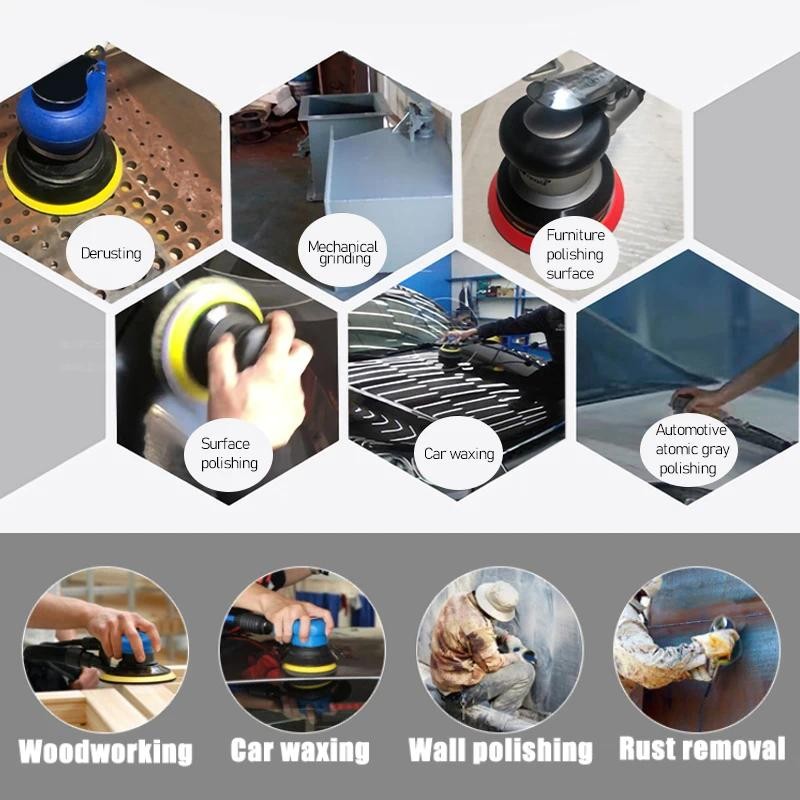 Pneumatic Air Car Polisher Waxer Penggosok Udara Orbital Sander Pneumatik 5 inci / 6 inci Penggosok Udara Orbital Sander
