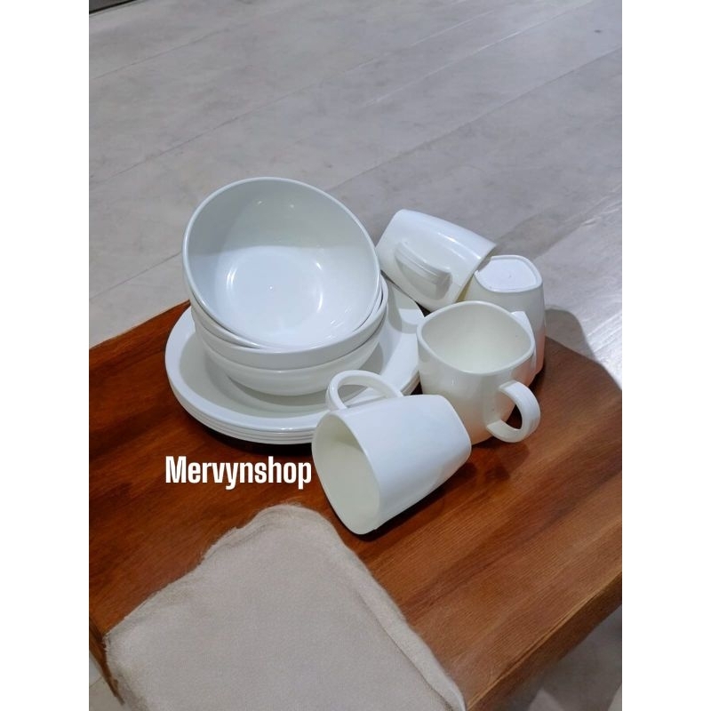 SET PERALATAN MAKAN 1 LUSIN ISI CAMPUR PIRING MANGKUK DAN CANGKIR MELAMIN