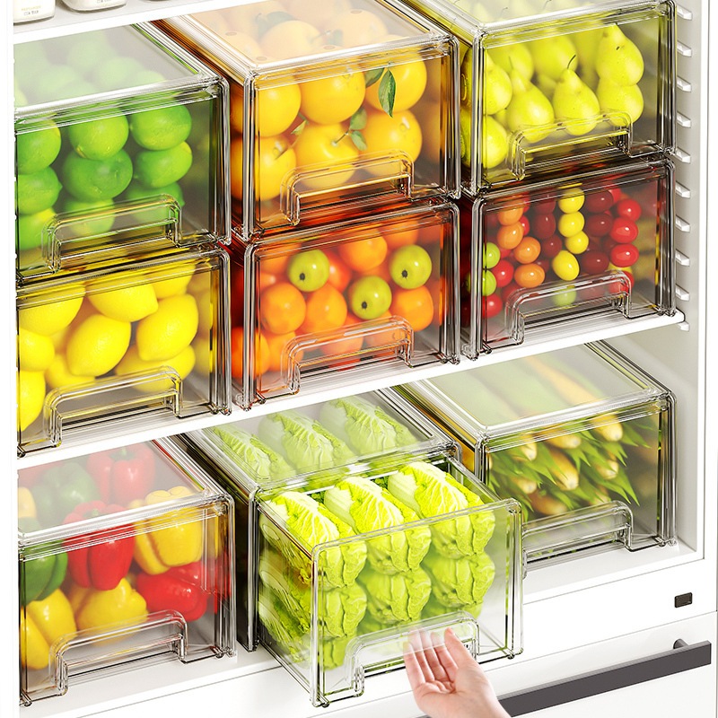Kotak Penyimpanan Makanan Kulkas Tipe Laci Plastik Transparan Kotak Penyimpanan Tiriskan Susun Kotak Penyimpanan Buah Da