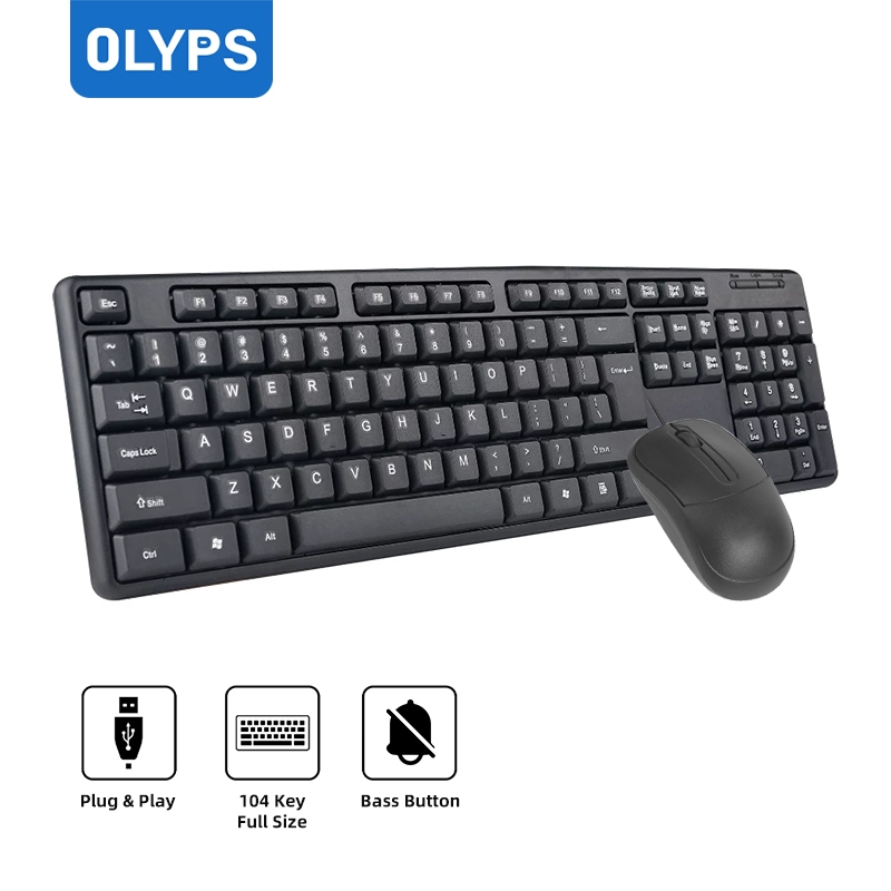 Keyboard dan Mouse Set Kabel USB 104 Keys Full Size Wired Ergonomic untuk PC Laptop