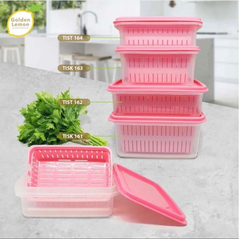 Paket Bundling 1 set (isi 4pcs ) Box Sayur Pink 2 in 1 Kotak Penyimpanan Bahan Makanan