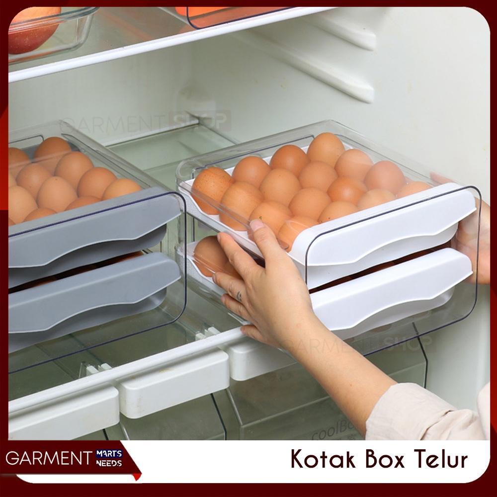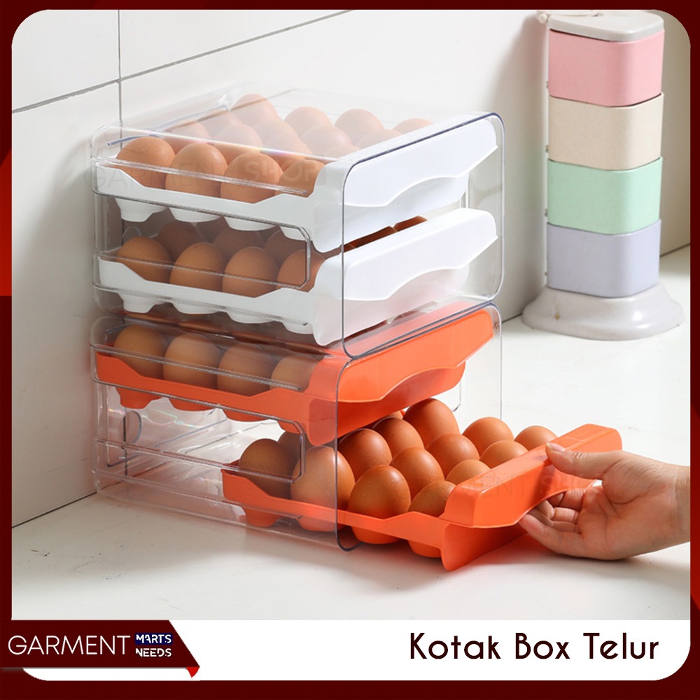 AKRLUR - Box Akrilik Penyimpan Telur 32 Lubang Egg Box Laci 2 Susun Organizer Dapur Kulkas Anti Pecah