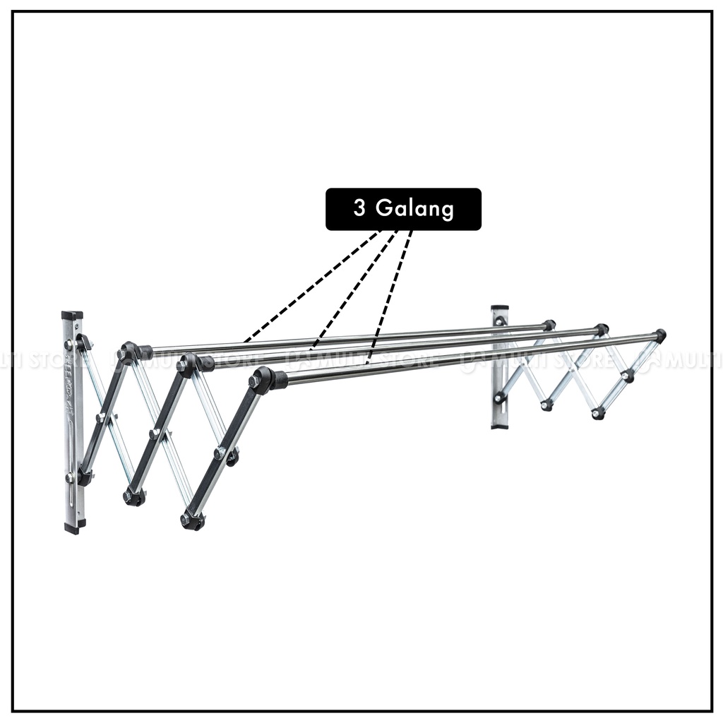 Jemuran Baju Dinding Lipat 150 cm PELBOK Stainless Anti Karat 1,5 Meter