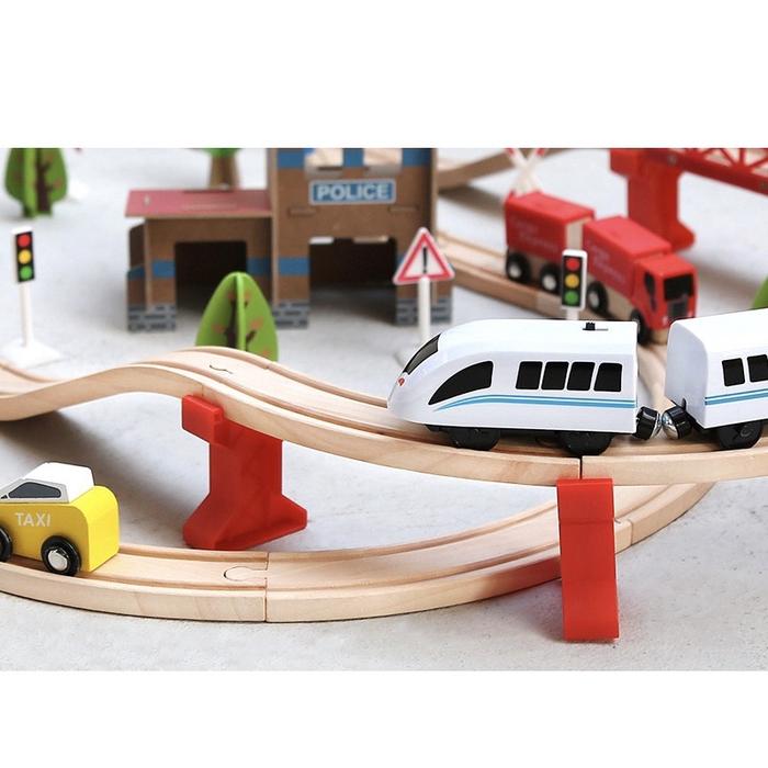 88pcs Electric Train Diorama Wooden Track Set - Mainan trek Kereta Api elektrik dengan jalur kayu