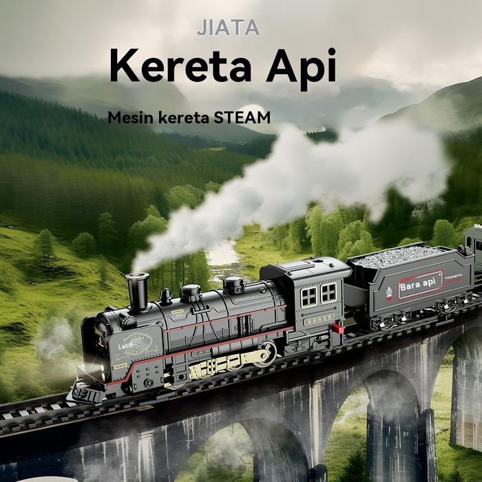 JiataKereta Api Mainan Listrik Uap Klasik Model Rel Nyata Set Kereta Cepat Anak Laki-Laki Efek Asap