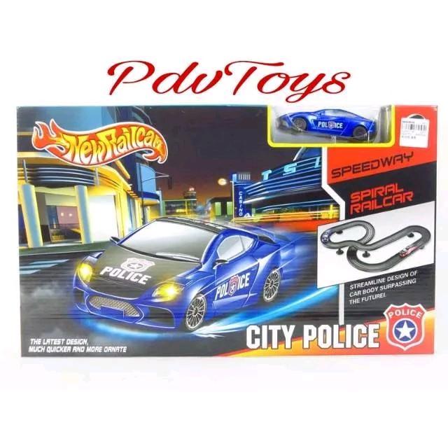 Mainan track rel lintasan mobil-mobilan polisi baterai City Police New Rail Car
