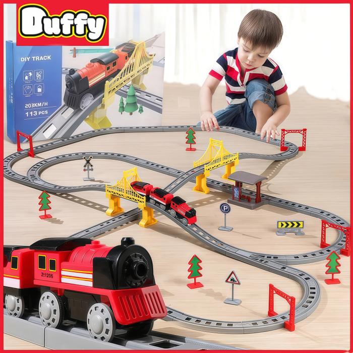 Duffy toys Kereta Api Mainan Anak Perakitan Listrik Miniatur Rel Kereta Api Mainan DIY Kereta Api