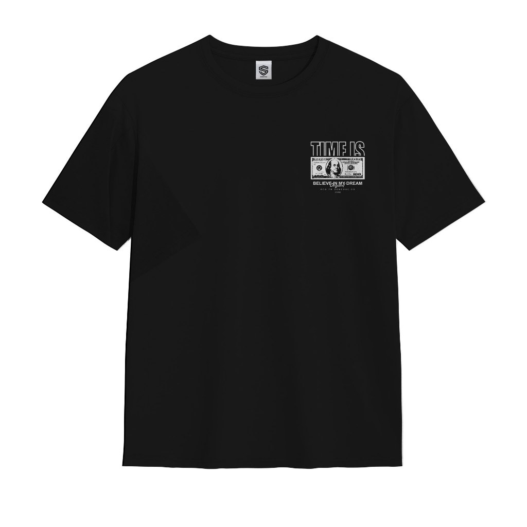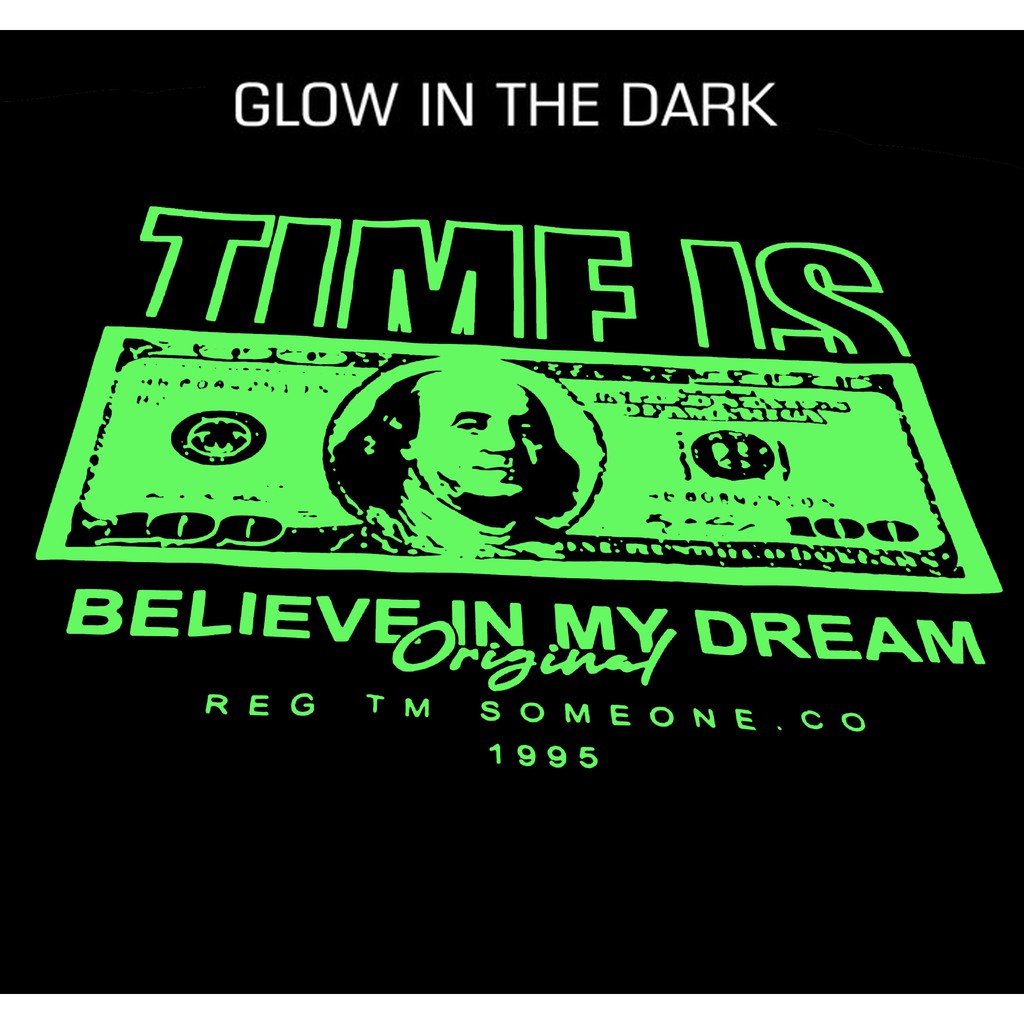 Kaos Pria Distro T Shirt Glow In The Dark Black 158D Time Is Money