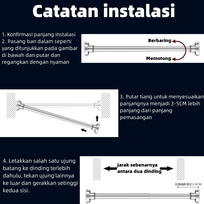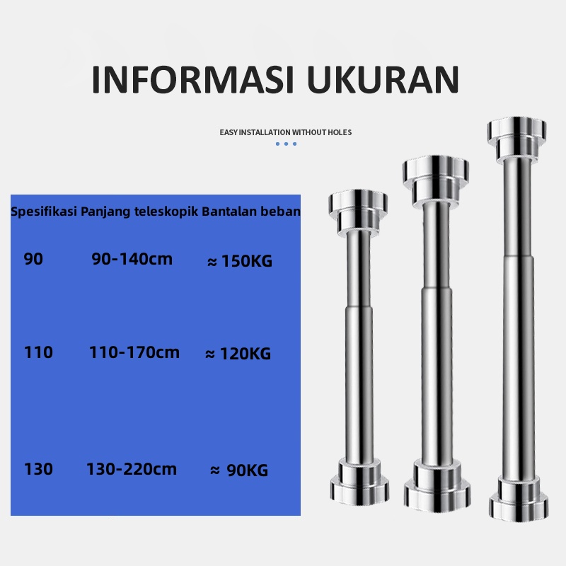 Tiang Gorden Fleksibel tiang jemuran/tiang horden/tiang dapur/batang kamar mandi/batang lemari pakaian/ tiang serbaguna
