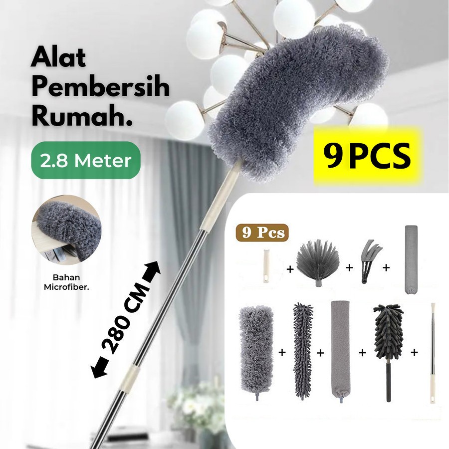 8/9 Pcs Kemoceng Microfiber 2.8m Tarik Tekuk Panjang Alat Pembersih Langit-Langit Rumah/Alat Pembersih Rumah / Kemoceng