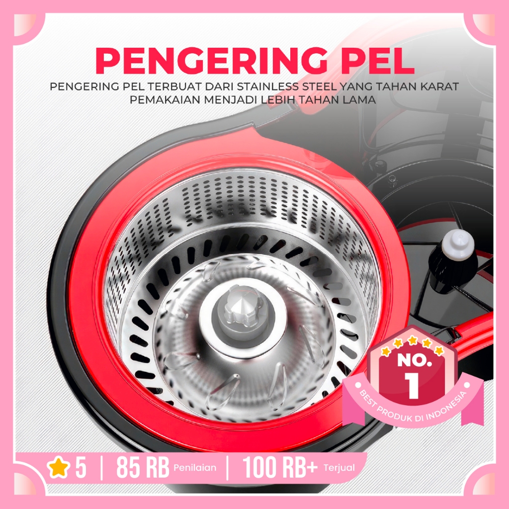 Super Mop Alat Pel Lantai Ember 2 in 1 Spin Mop Putar Set Pel Lantai Stainless Steel