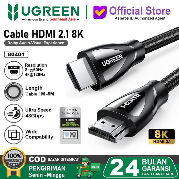 UGREEN Kabel HDMI 2.1 8K 60hz 4K 120hz 48Gbps Ultra High Speed HDCP2.2 - 80401 8K 1M