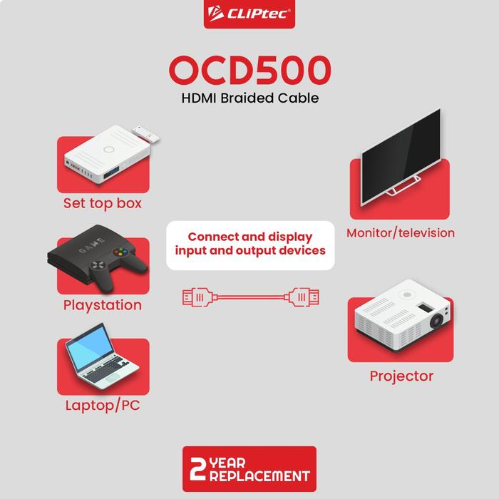 Kabel Hdmi to Hdmi 10m High Speed Full HD Gold Plated Cliptec OCD500