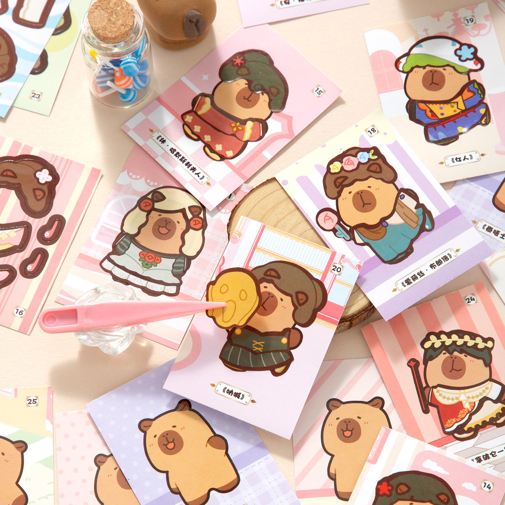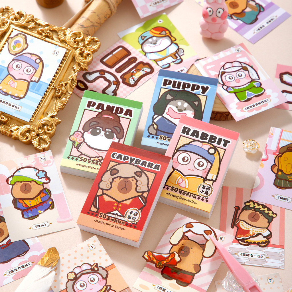 [HARU[] Mini Animal Dress Up Series Sticker Book Include Tweezer Stickers Dekorasi Binder Scrapbook Jurnal Stiker DIY Stike