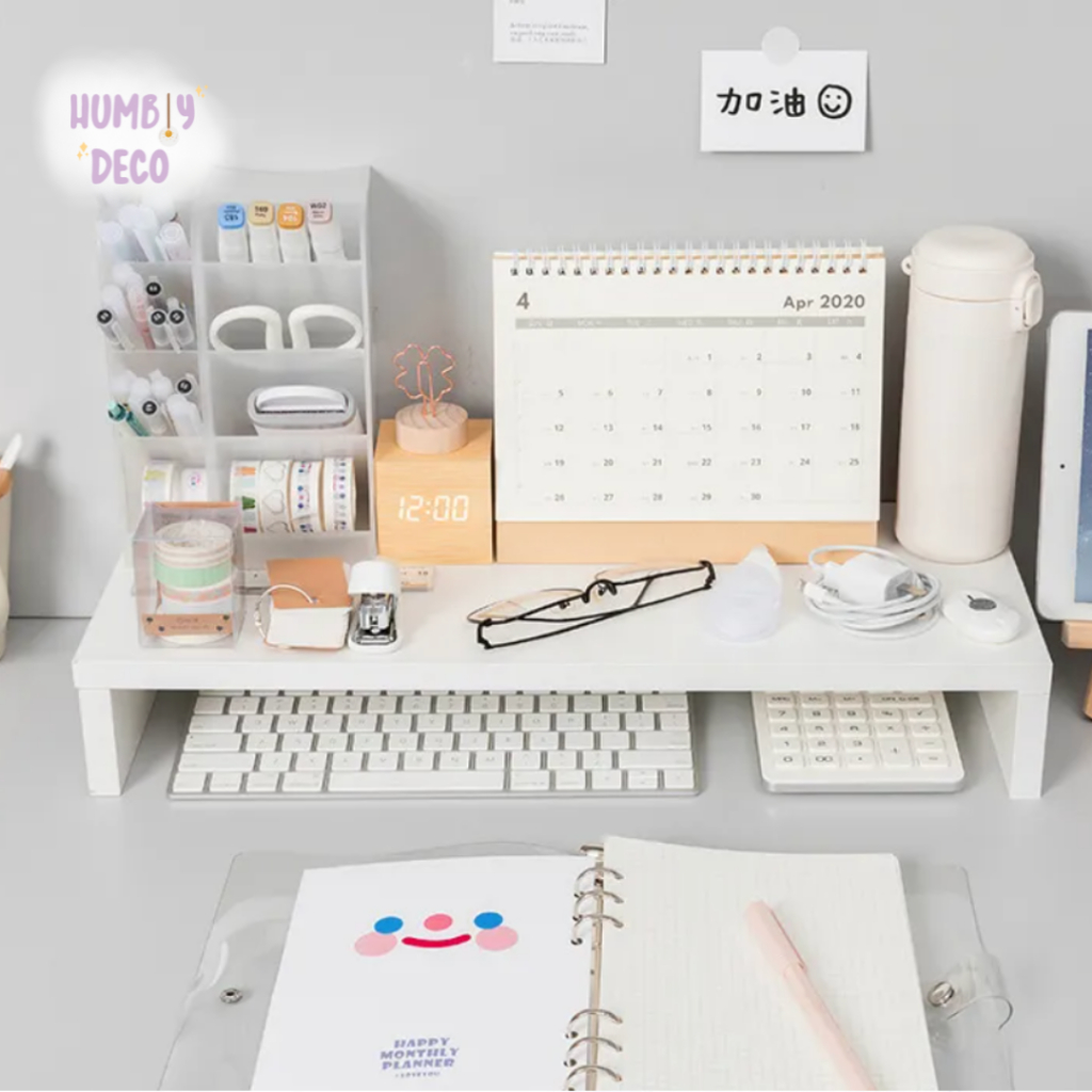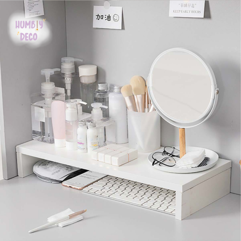 Humbly Deco - Korean Aesthetic White Study Table Wood Rack Desk Organizer | Rak Meja ala Korea Minimalis Aesthetic