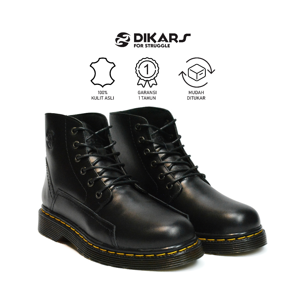 DIKARS - Spartan Hitam Sepatu Boots Pria Formal Kulit Asli Original