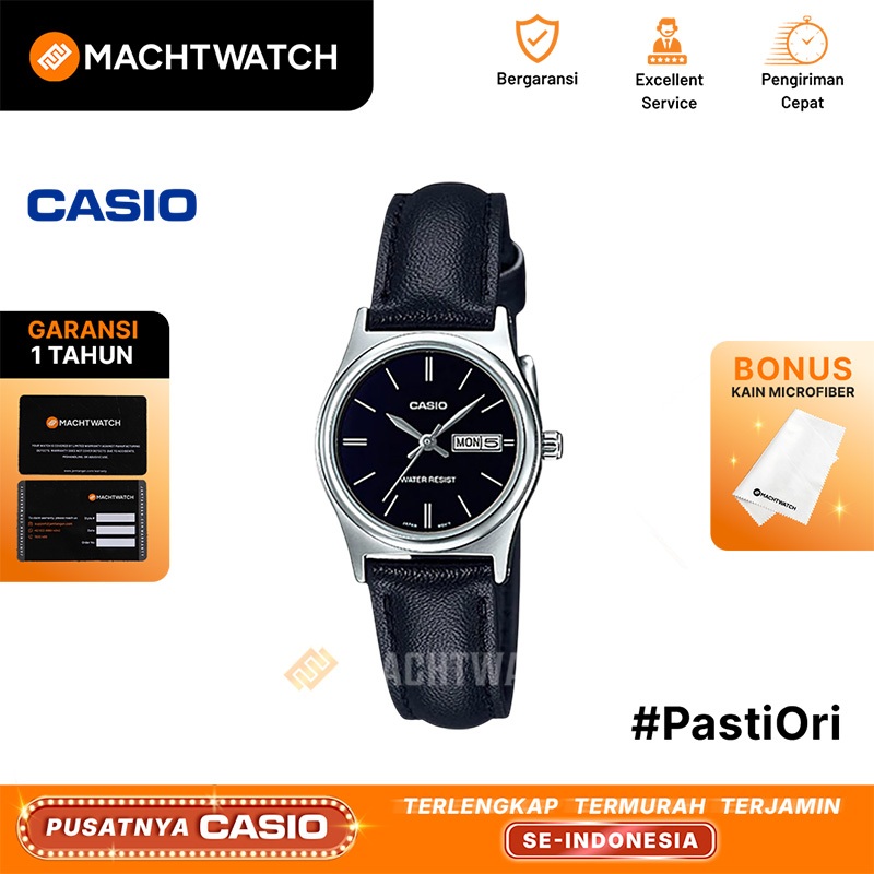 Jam Tangan Wanita Analog Casio Standard LTP-V006L-1B2UDF LTPV006 LTP-V006L Black Dial Black Leather Band