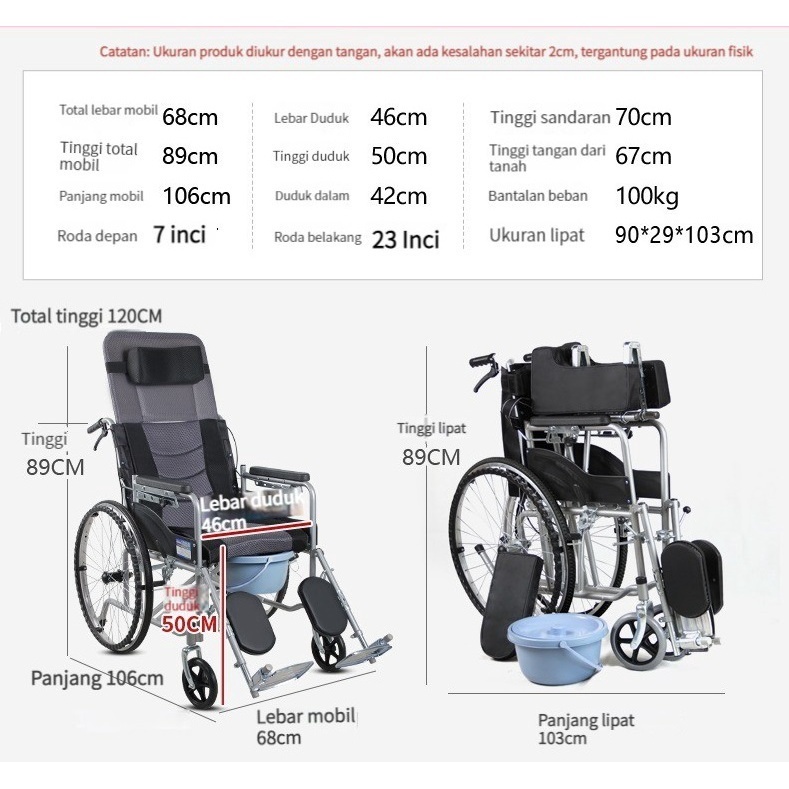 KURSI RODA DEWASA HIGHLINE KURSI RODA LIPAT PORTABLE WHEELCHAIR KURSI RODA MEDIS LIPAT TRAVELLING LANSIA CICILAN 0 DP OR