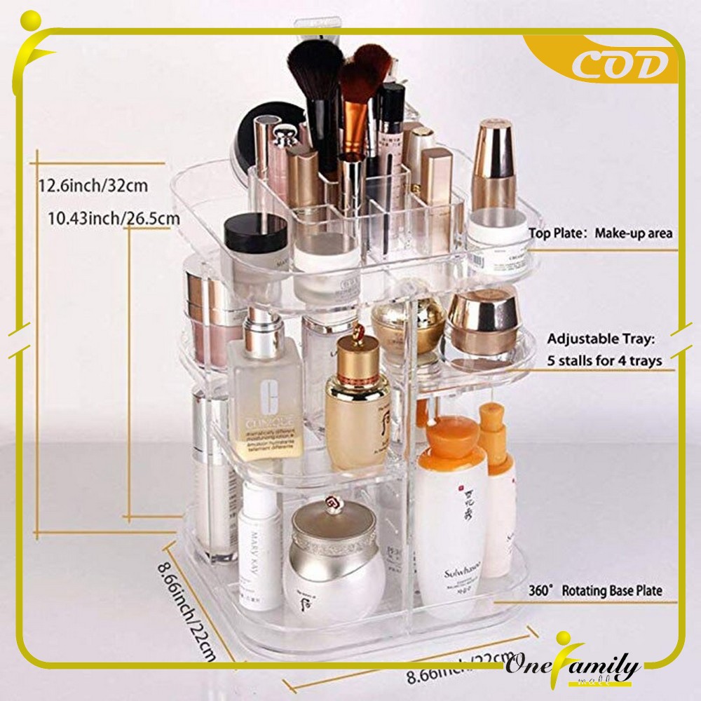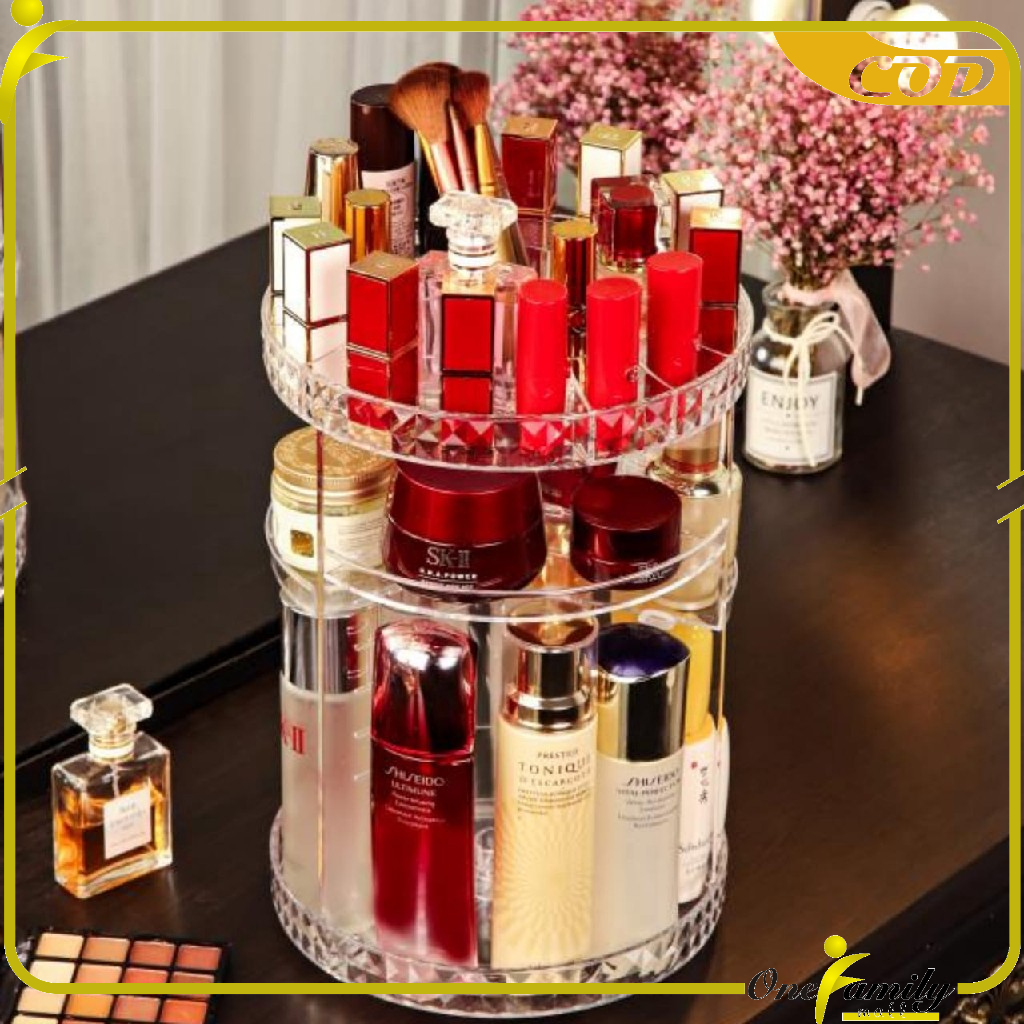 ONE-K5/K6 Rak Kosmetik Acrylic Putar 360 Derajat Diamond / Polos Rak Make Up Organizer Tempat Makeup