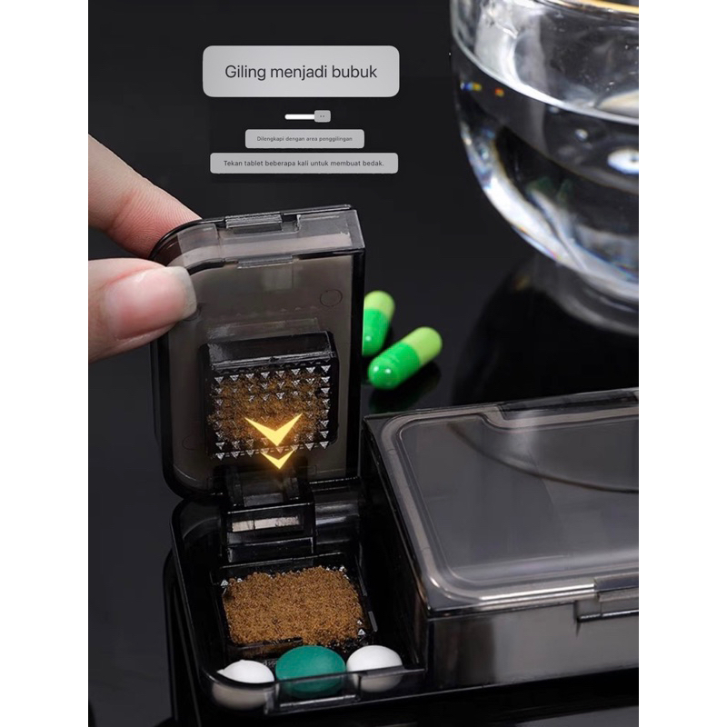 Kotak Obat Plastik Travel Pill Box Organizer Pil Cutter Crusher Stroage Large Pocket Size /Kotak Penyimpanan Obat /Kotak