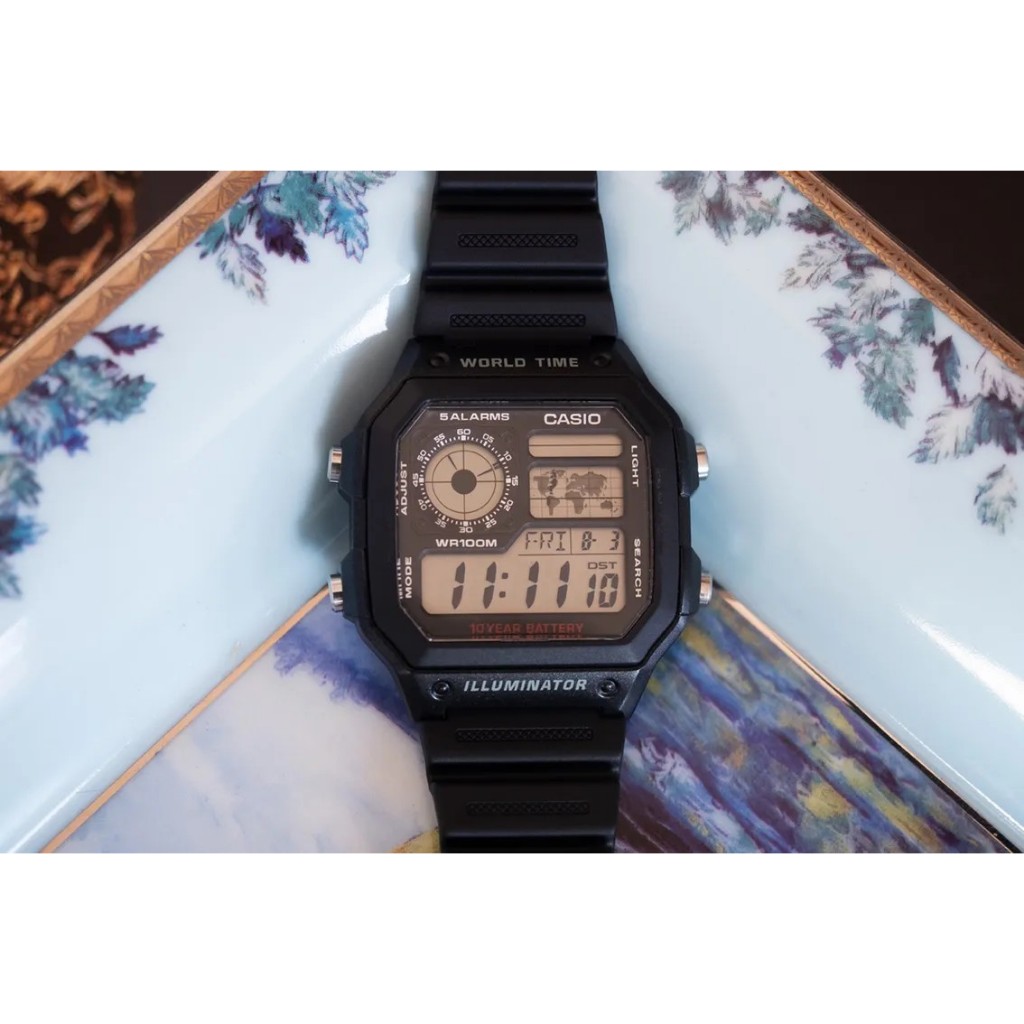 Jam Tangan Pria Digital Casio Standard AE-1200WH-1AVDF AE1200 AE-1200WH Black Resin Band